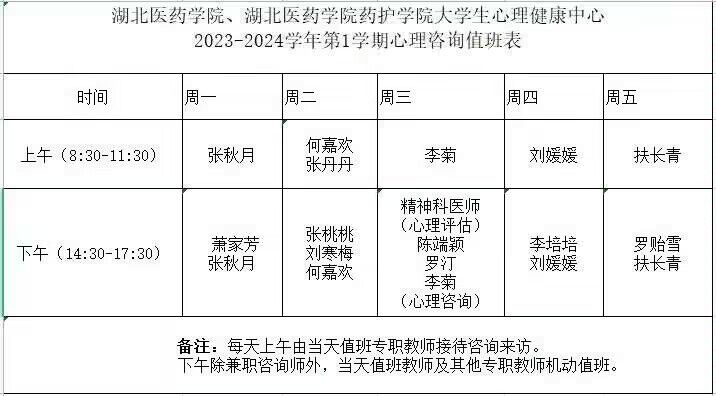 太阳集团官网tyc9728、太阳集团官网tyc9728药护学院大学生心理健康中心2023—2024学年第1学期心理咨询值班表