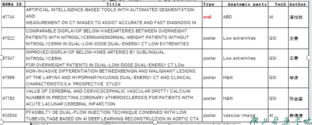 本网讯(通讯员 余松蓝 安娜)近日,2024年第110届放射学界顶级学术盛会——北美放射学年会(Radiological Society of North America,RSNA)论文中稿结果公布,太阳集团网tyc9728陈文教授团队悉心筹备指导的6篇研究成果成功入选会议交流。其中,大会口头发言1篇,壁报交流5篇。