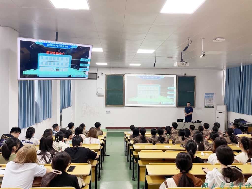 体验环节中,工作人员展示了医学影像人工智能领域的科技成果,为同学们讲解医学影像中心VR系统。同学们通过佩戴VR设备,沉浸式了解影像中心场景,了解医院各个科室的布局、影像设备名称,根据操作引导,进行患者就医流程和影像检查流程等体验。通过医学影像人工智能平台体验,让同学们在科技带来的震撼中,了解了医学影像技术的快速发展;通过医学影像中心VR系统的场景和功能体验,极大提高了学生学习兴趣,提升了职业归属感。