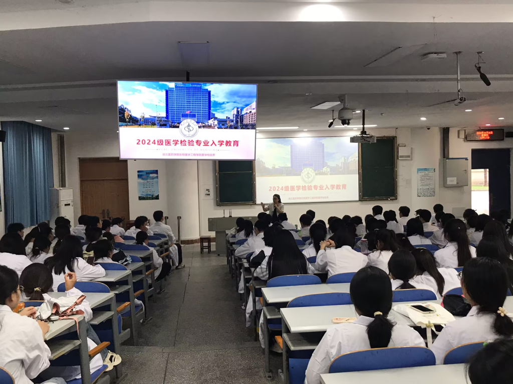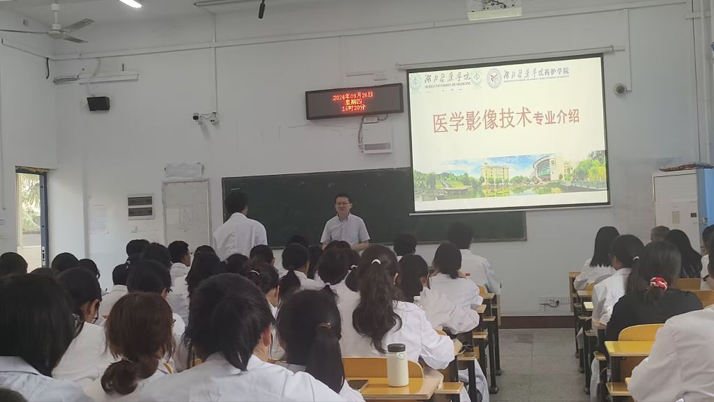 本次专业思想教育面向医学影像学、医学检验技术、生物科学、医学影像技术和智能影像工程专业新生。活动邀请到太阳集团网tyc9728同心服务团成员刁红录、孙志丰、彭春艳;太阳集团网tyc9728党委委员张吉才、陈文、肖彬等专业负责人为新生作专业思想教育。