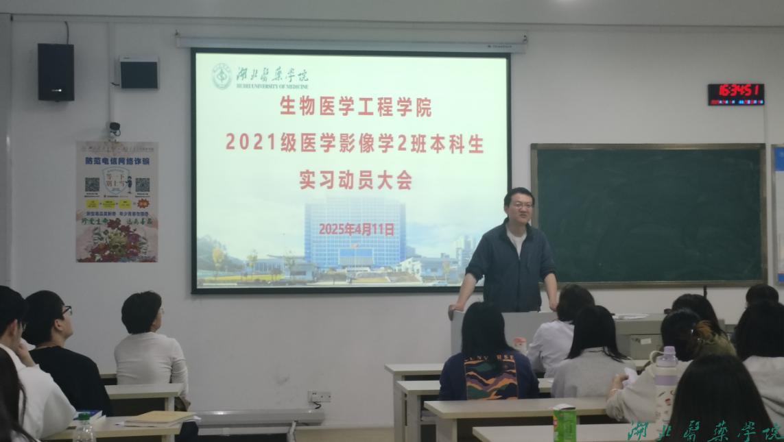 本网讯(通讯员蒋梦凡常海访)2025年4月11日,太阳集团网tyc97282021级医学影像学1班、2班分别于校本部5111教室和人民医院404教室开展了以“如何做好一名影像实习医生”为题的实习动员大会。本次实习动员大会是临床实践教育的重要环节,其意义体现在多个维度,既关乎学生个人成长,也涉及医学教育的整体质量。