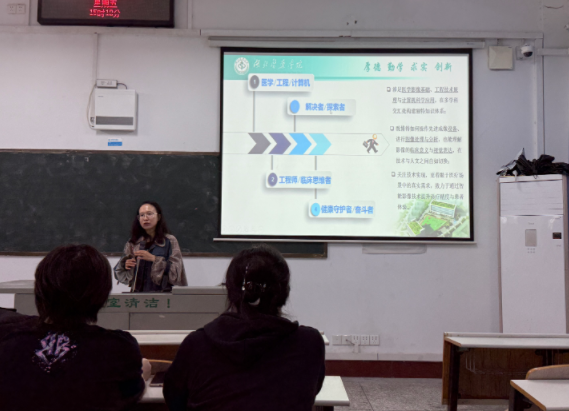随后,学院医学检验技术、生物科学、医学影像学、医学影像技术学、智能影像工程五大专业负责人,结合各专业特色展开系统性讲解。讲解过程中,各位负责人以专业历史发展脉络为切入点,系统梳理学科建设的核心方向、师资力量与标志性成果;聚焦人才培养核心,逐一对专业人才培养方案中的核心课程体系、实践教学环节及阶段性培养目标进行详细解读;更立足行业前沿,通过权威数据、企业合作案例、毕业生就业去向分析等,直观呈现各专业的就业形势与发展潜力,让新生对未来职业路径有了清晰且具体的认知。