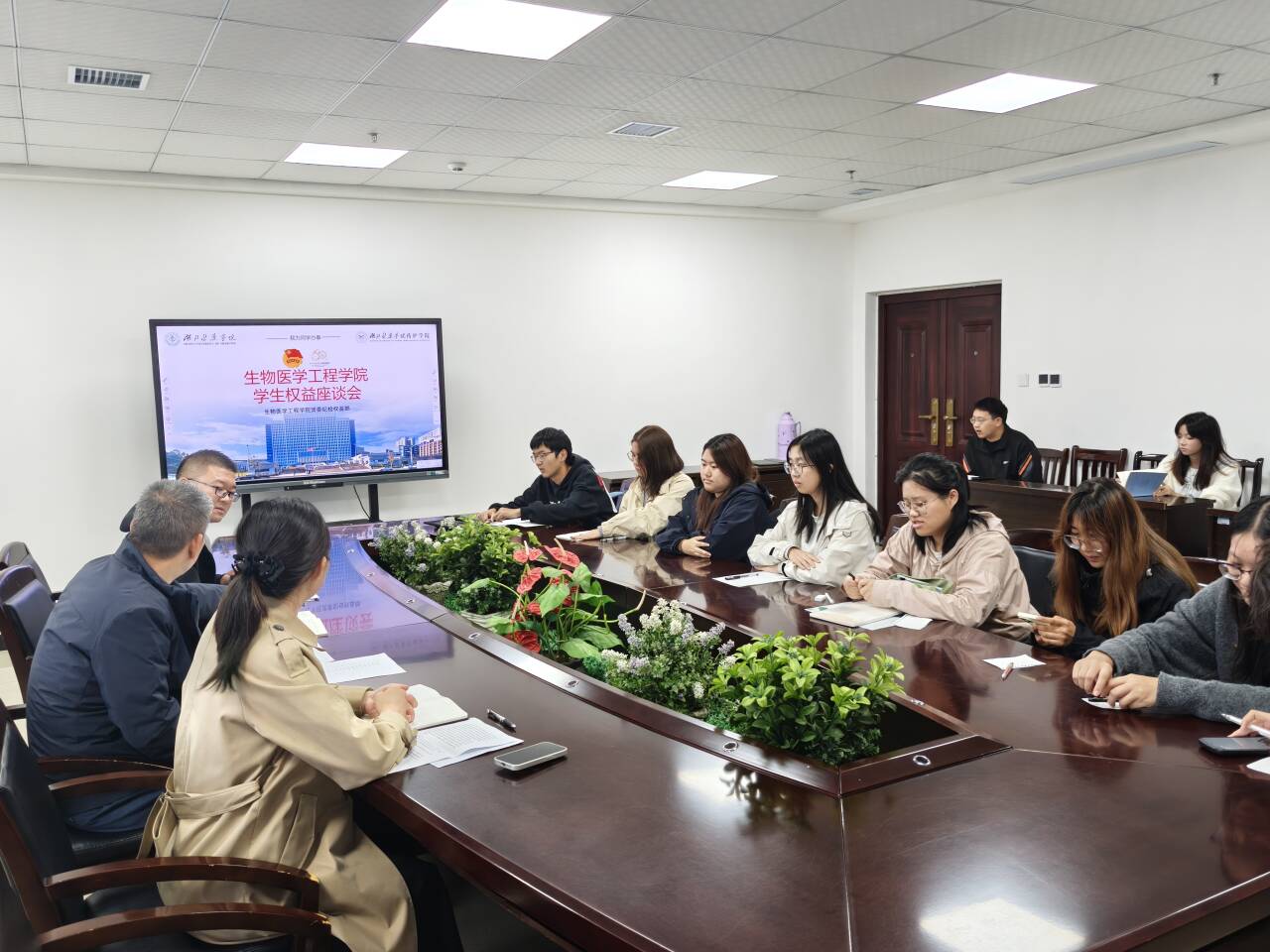 本网讯(通讯员 付永衡 陈锦怡)为畅通学生诉求表达渠道,切实保障学生合法权益,太阳集团网tyc9728于2025年10月17日16:30在公卫大楼6楼会议室组织召开学生权益保障座谈会。会议由学院团委书记付永衡主持,学院党委副书记徐争、学生工作办公室主任李进、学院学生会纪检权益部全体成员以及部分班级的班长与团支书共同参加。